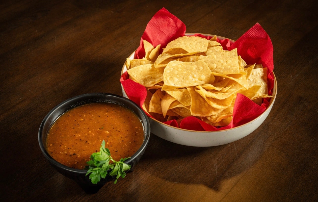 CHOICE OF:- Chips with SalsaCrunchy corn tortilla chips accompanied with our homemade chunky salsa