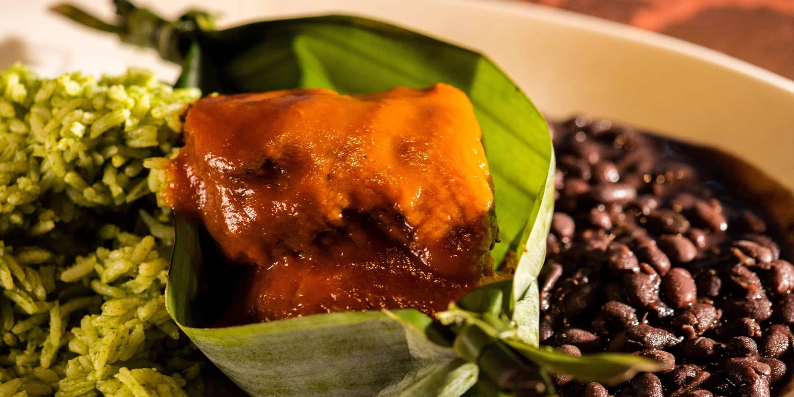 - Santa Rosa BarbacoaGuajillo chile rubbed pork served in a banana leaf, chipotle BBQ sauce, cilantro rice, black beans, corn tortillas