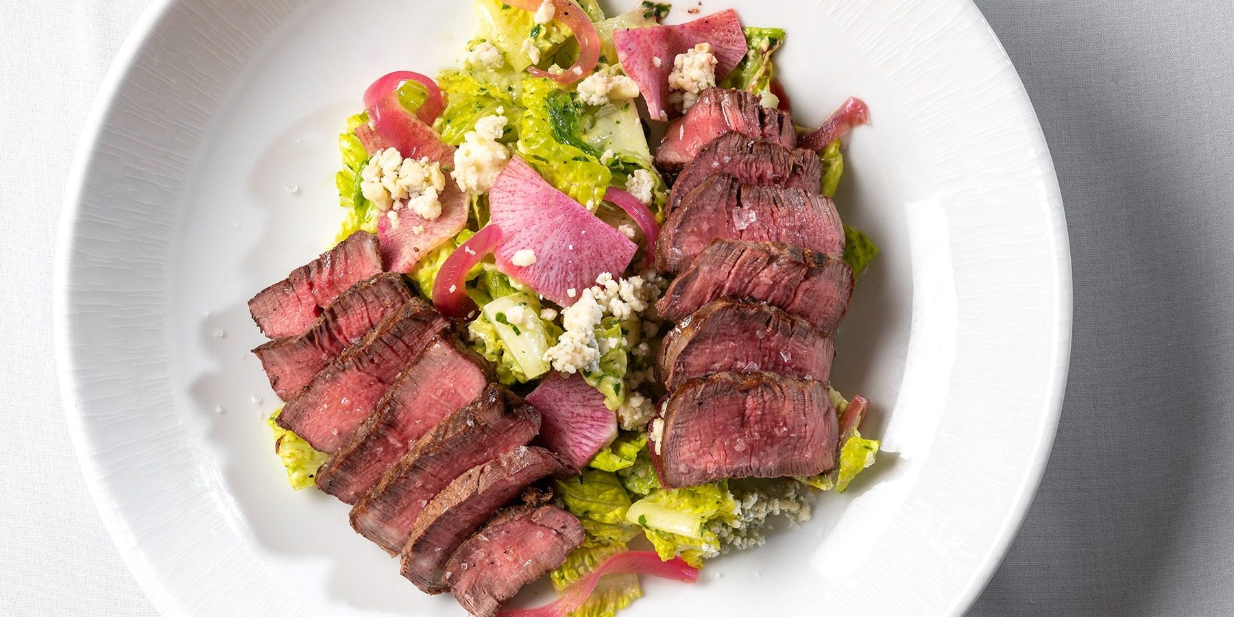 CHOICE OF:- Creekstone Farms Angus Tenderloin SaladRomaine hearts, herb emulsion, pickled red onions, herb croutons, shaved radishes, Wisconsin blue cheese