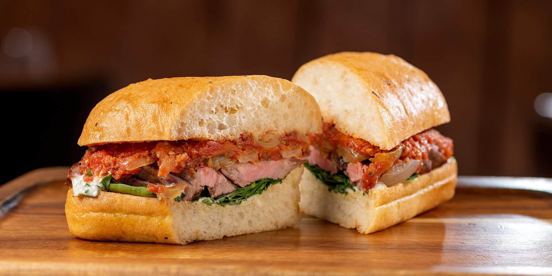 - Creekstone Farms Angus Tenderloin SandwichFocaccia bread, tomato balsamic chutney, savoy spinach, herb emulsion