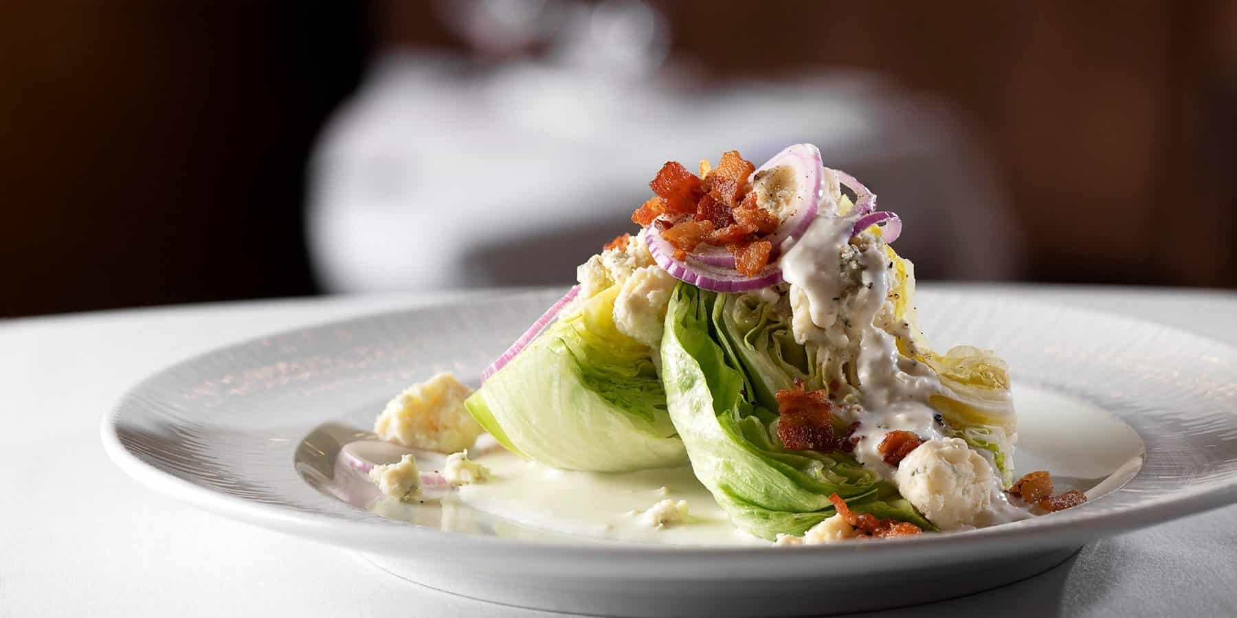 - Iceberg Lettuce WedgeSmoked apple bacon, red onions, buttermilk blue cheese dressing