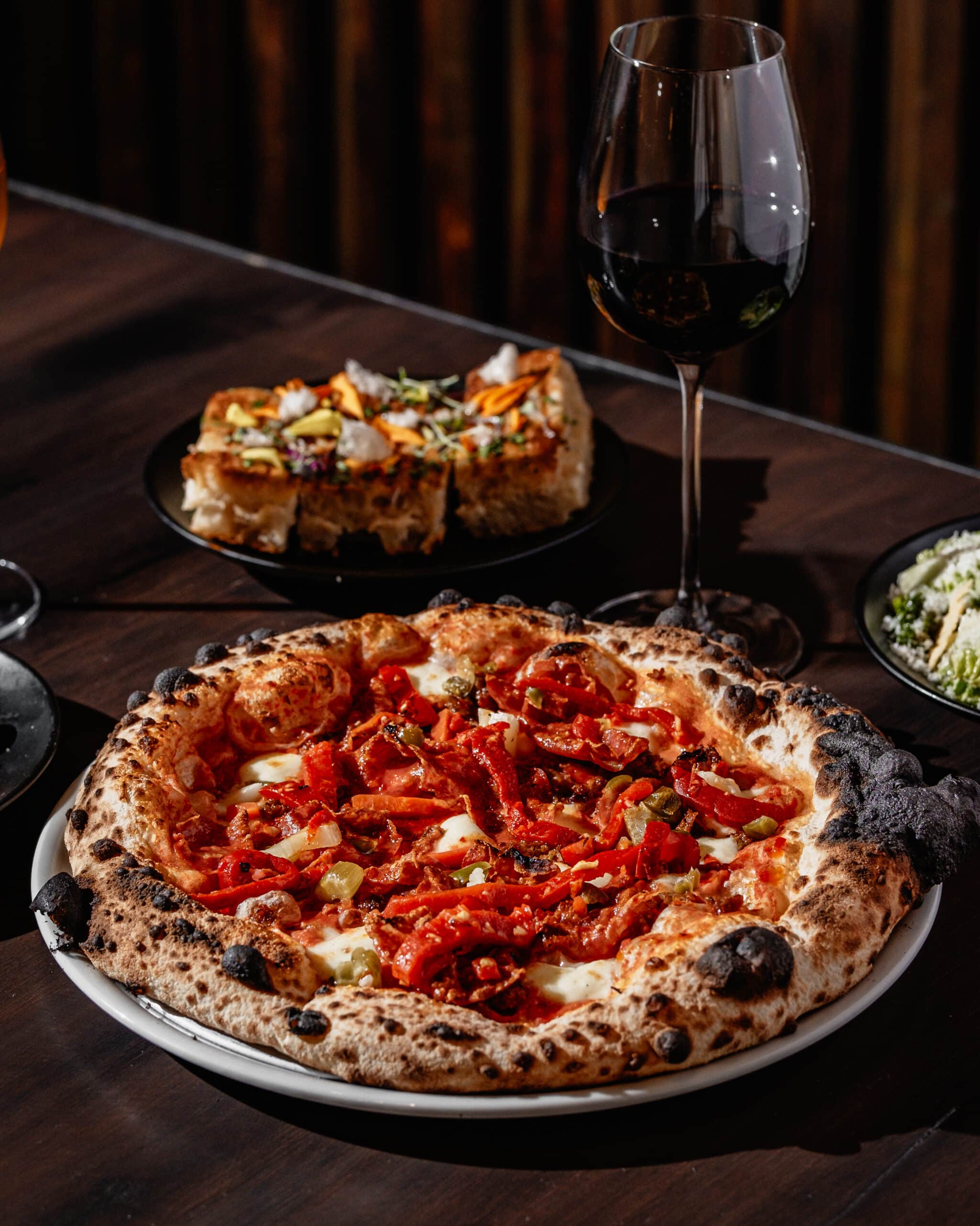 - Pepperoni PizzaVodka sauce, fior di latte, chili crunch, dry aged pepperoni, basil, evoo
