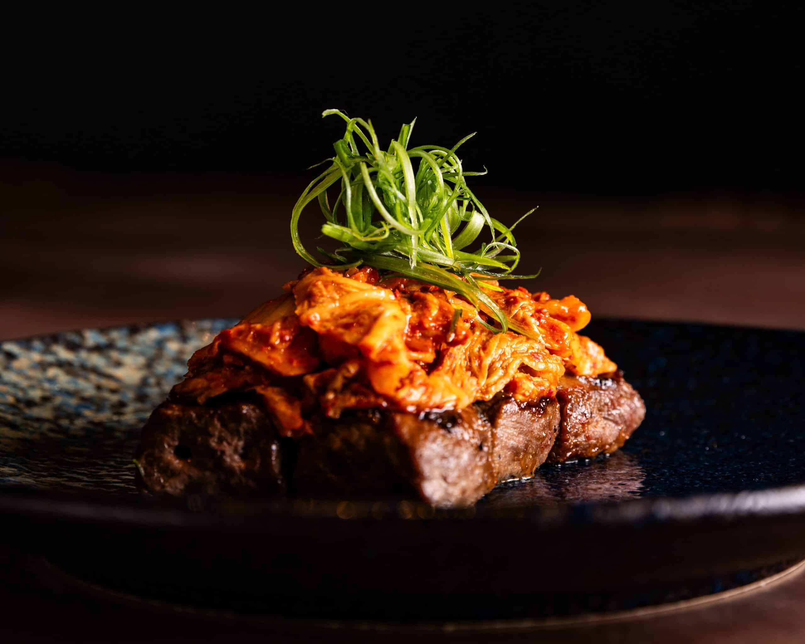 - Filet Mignon* ($15 Supplement)Fire-roasted kimchi, toasted garlic soy