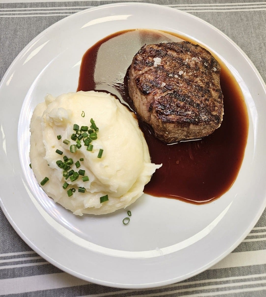 CHOICE OF:- Filet Mignon (GF)6oz, Chef's daily whipped potatoes, bordelaise