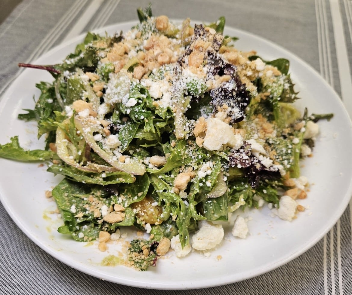 - Spring Goddess (PB)Spring mix, glazed apricots, snap peas, shallots, candied almonds, green goddess