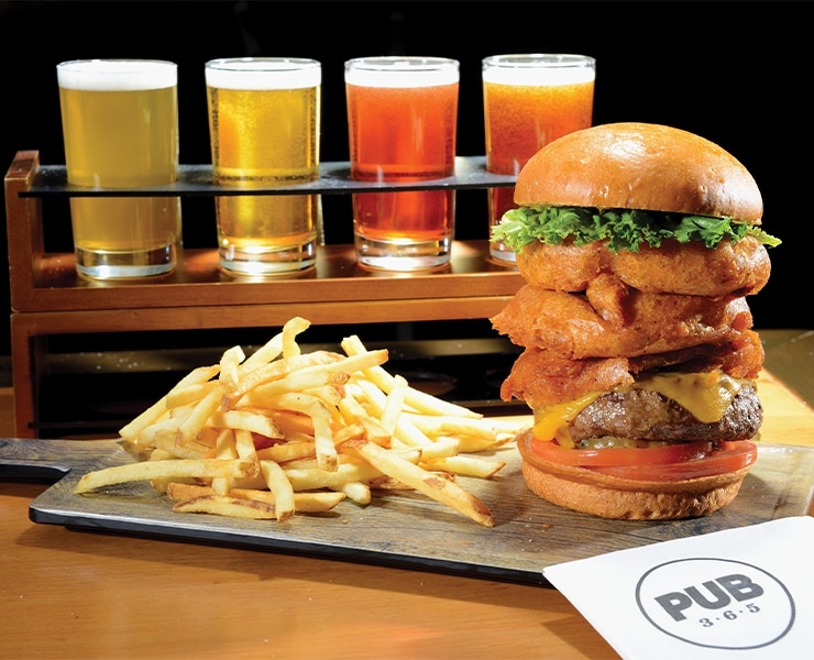 - Unicorn BurgerBlack angus beef, cheddar cheese, lettuce, tomato, pickles, beer battered onion rings, mayo