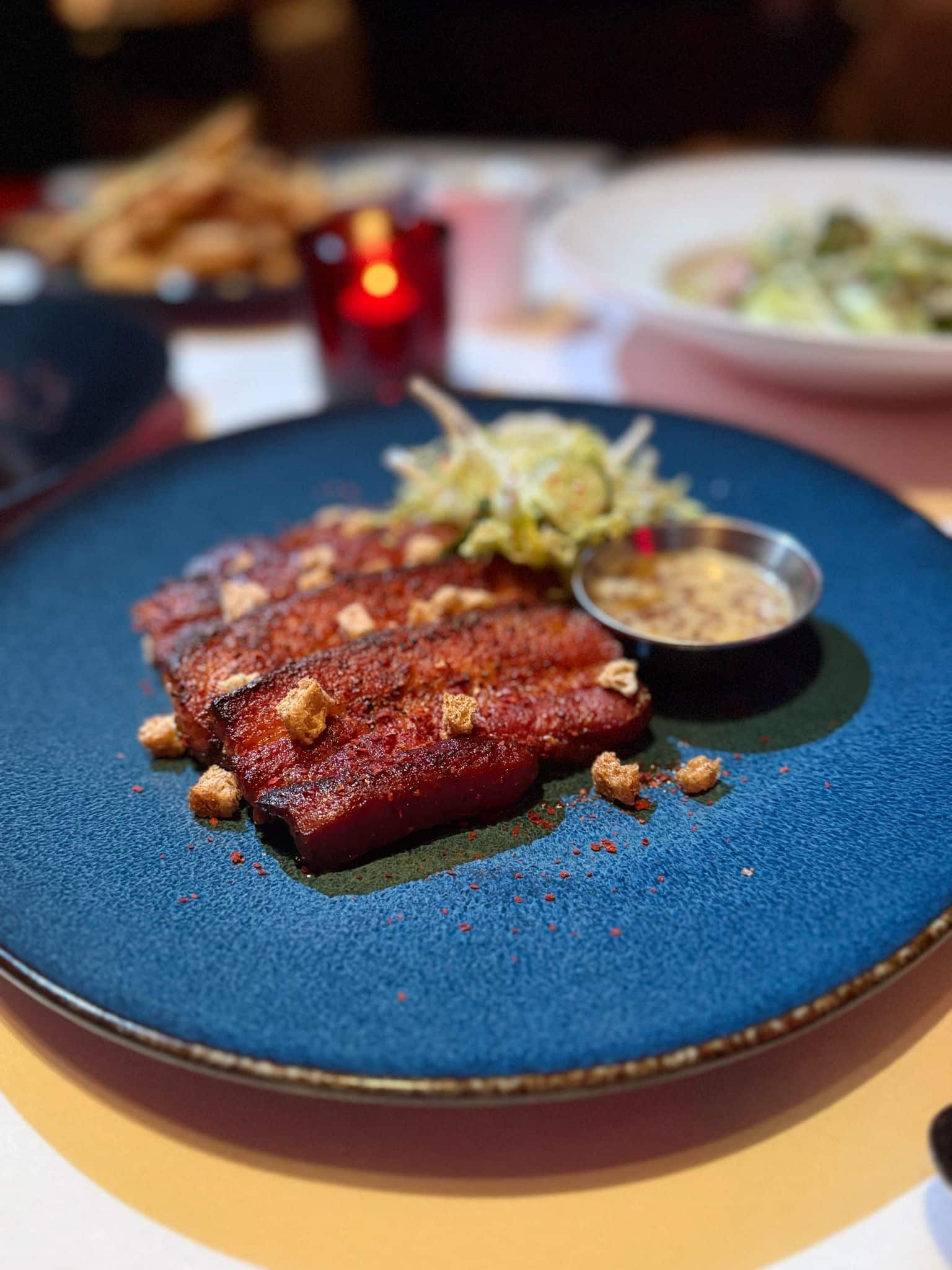 CHOICE OF:- Strip House Roasted BaconPastrami cured, pickle, rye bread croutons, hot honey mustard aioli