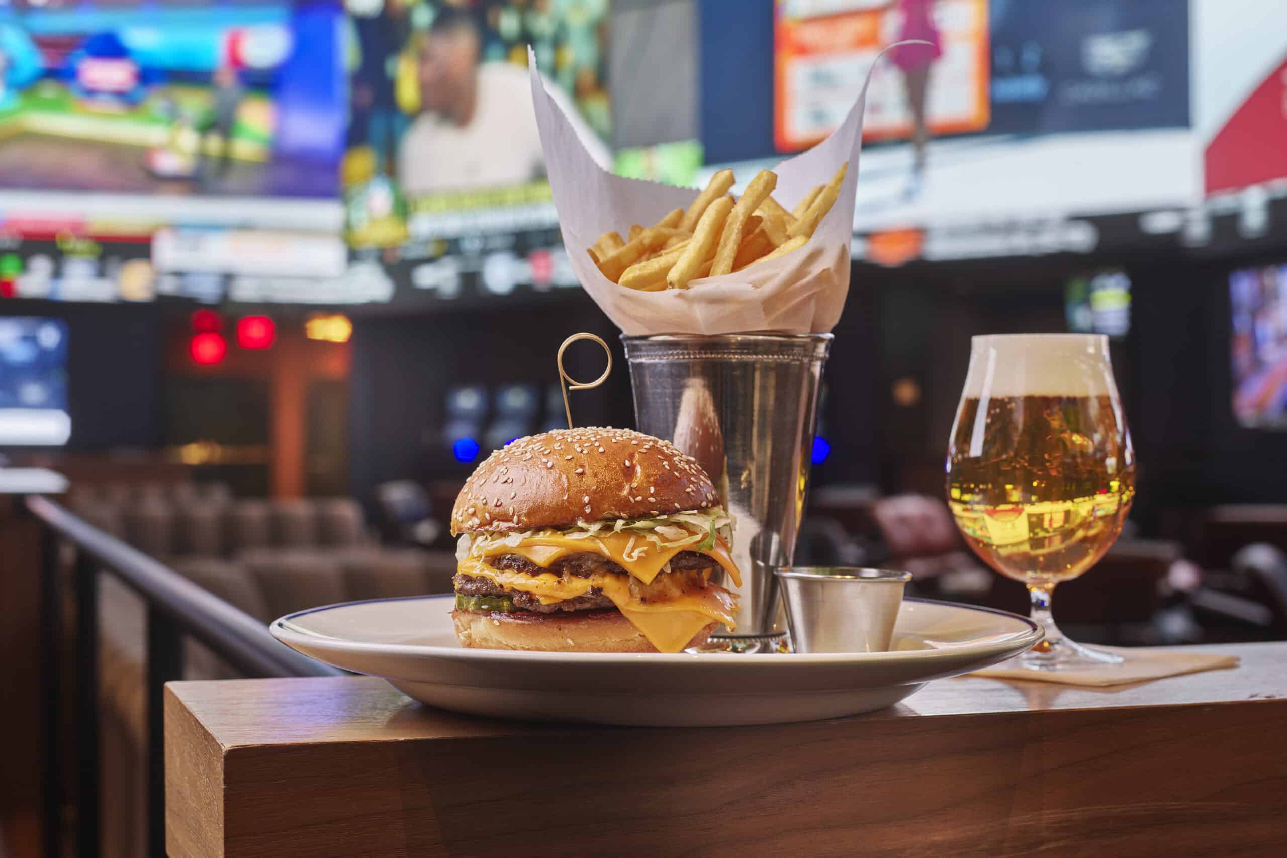 - The Staple BurgerTwo 4oz patties, american cheese, shredded lettuce, tomato, red onion, special sauce