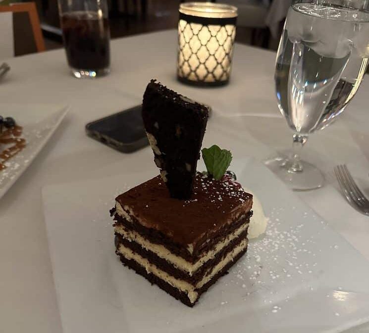 CHOICE OF:- TiramisuTiramisu with chocolate genoise, mascarpone cream, and chocolate biscotti