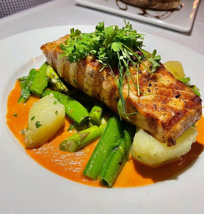 - Verlasso SalmonGrilled south pacific verlasso salmon with steamed yukon gold potatoes, seasonal baby vegetables and shrimp cream bisque