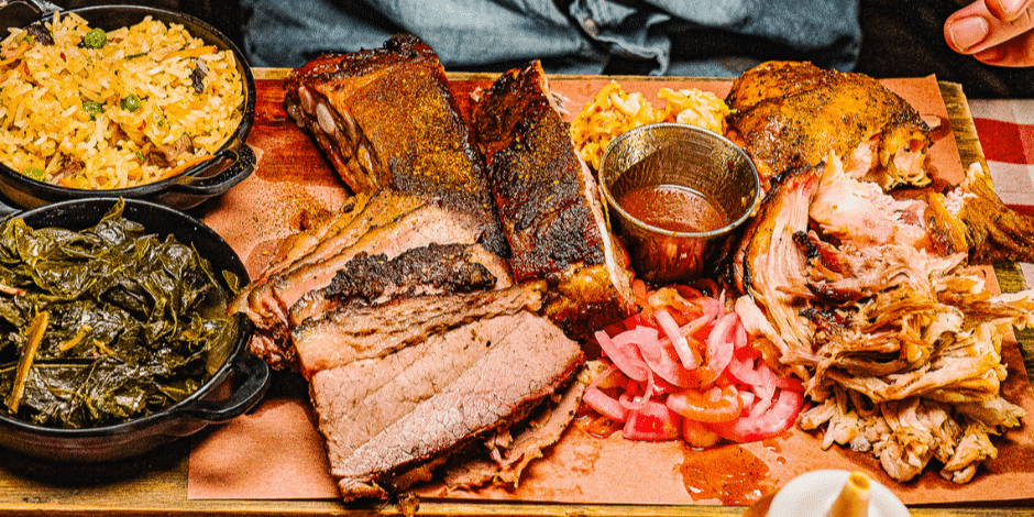 - Smoked Veggie ‘Q TacosSmoked portobello mushrooms, poblano peppers, tomato & onions, with chimichurri, avocado crema & cotija cheese