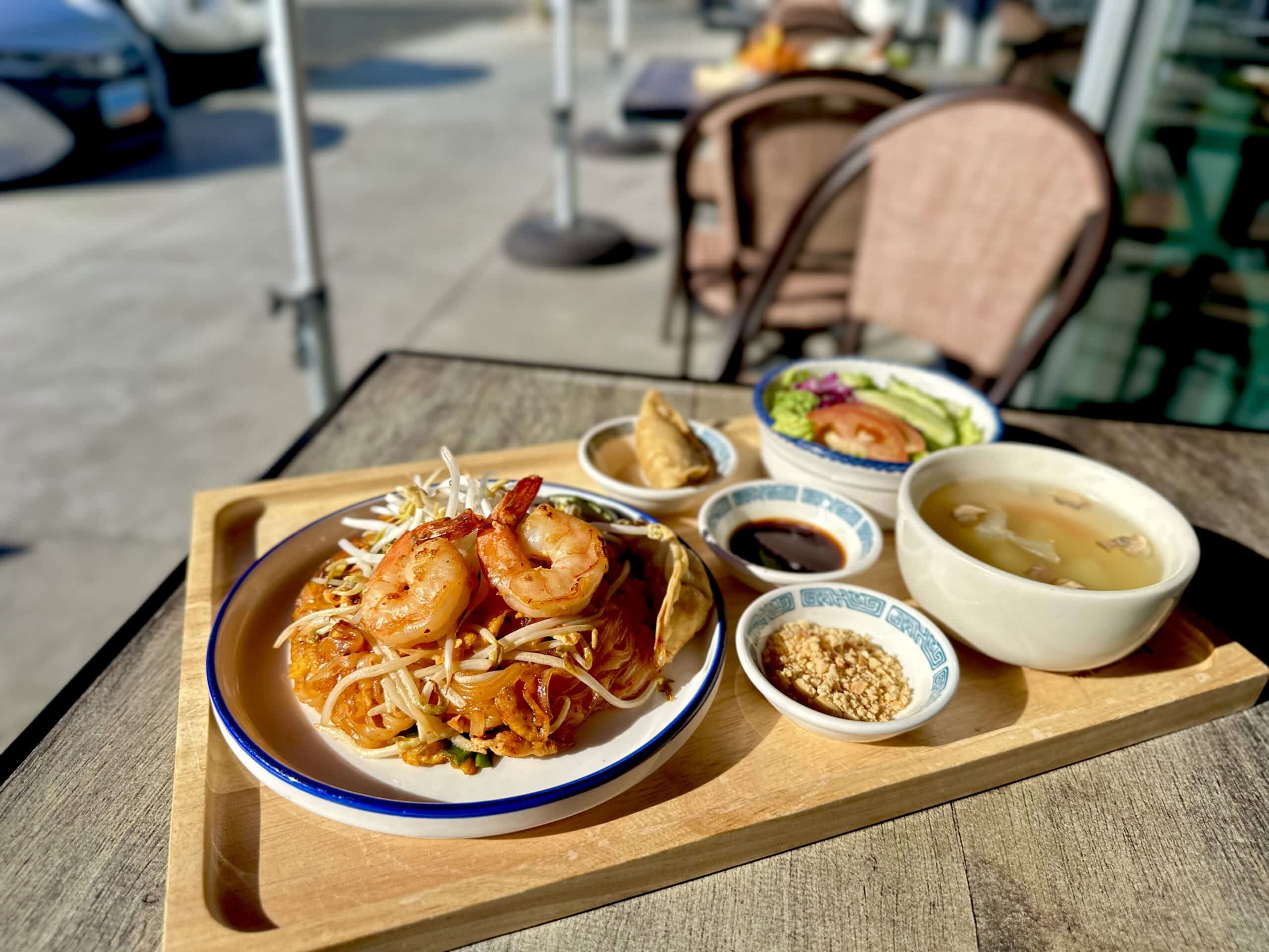 - Lunch Pad ThaiThai’s famous noodles stir-fried with egg, bean sprouts, green onion, and ground peanuts, with a choice of chicken, pork or tofu